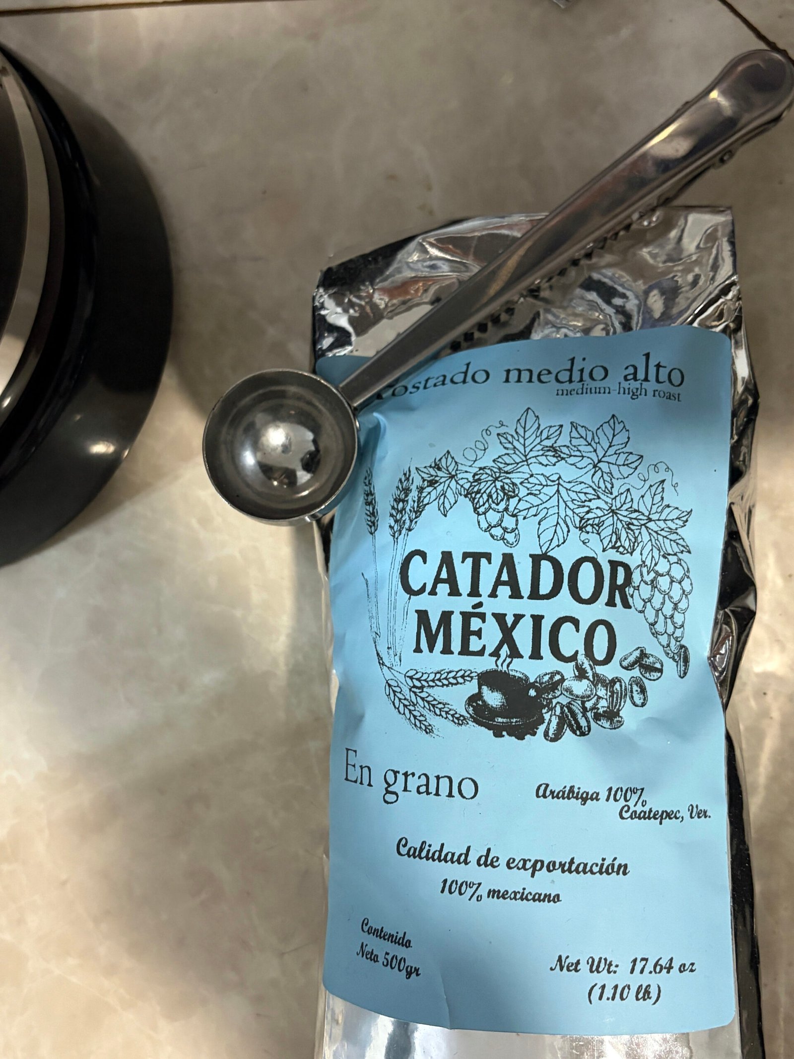 La cuchara medidora asegura que prepares tu café con la dosis ideal, mientras la pinza incorporada cierra las bolsas herméticamente, conservando el aroma y sabor de tus granos o molidos por más tiempo.